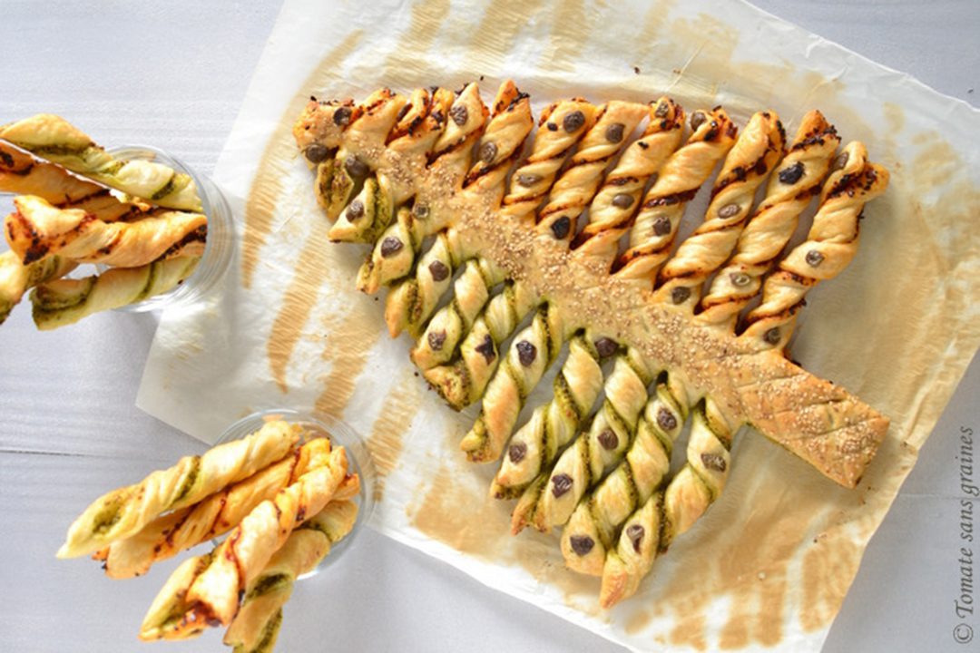 la Árbol de Navidad de hojaldre está disponible en varias formas, por lo que puede optar por ofrecerlo a sus invitados en una versión individual. Nada podría ser más simple: todo lo que tienes que hacer es cubrir tu hojaldre con una capa de tapenade o el relleno de tu elección, luego cortar cintas de hojaldre que colocarás en un pala de bambú para formar tu árbol. Todo lo que tienes que hacer es colocar tus preparaciones en un placa de cocina y metemos todo en el horno.