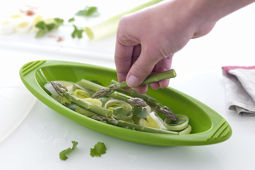 Para el pescado, preferimos una lámina de silicona ovalada, para que el filete permanezca entero y se cocine uniformemente.